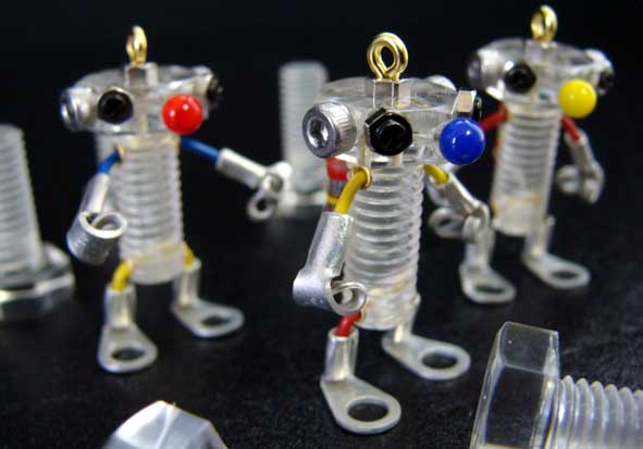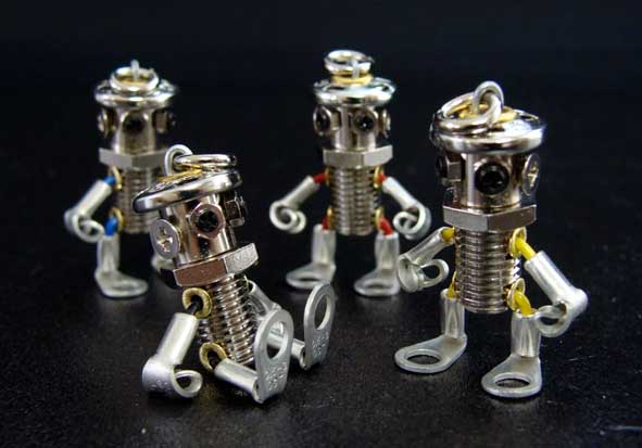 ロボット達の大きさは一円硬貨大。とても小さく、ストラップ状になっていますので、携帯電話に取り付けるとめちゃくちゃ似合います!!