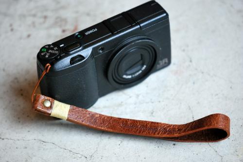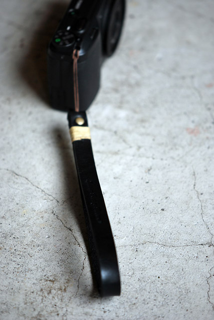コンパクトカメラなどに手軽に付けられる「レザーハンドストラップ」です。通販ご希望の方はこちら。
