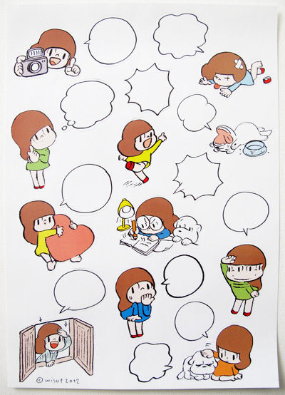 上のシールと同じサイズ。ふきだしに文字を書いて、手紙やプレゼントに貼れます。