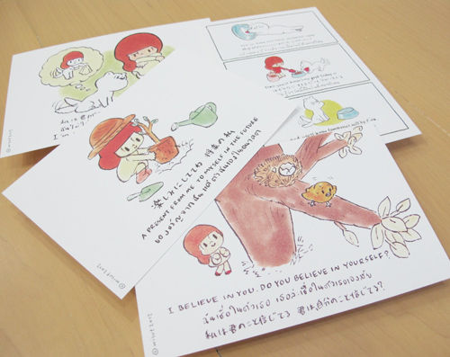 ロングセラーの書籍『マムアン れんあい編』や『マムアン げんきがでる編』でもおなじみ、どきっとするタムくんのひとことがポストカードに印刷されています。