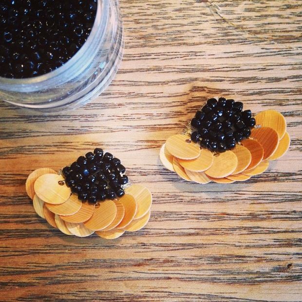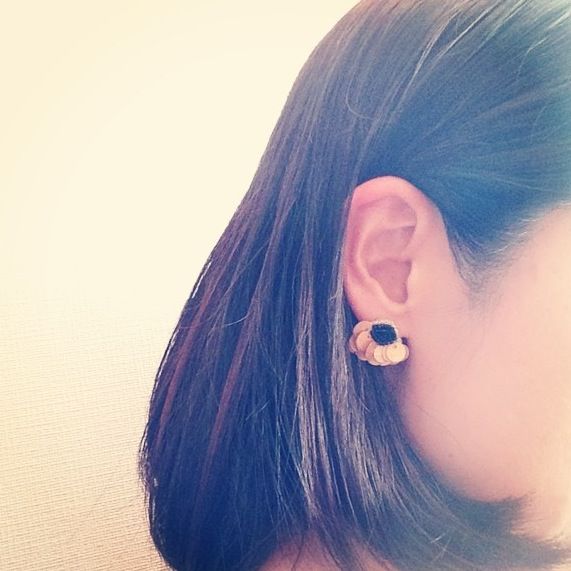 現行品にはなかなか無い絶妙な色味や、少し不揃いだったりする形が魅力のアンティークパーツ。今回入荷したスカラップピアスとイヤリングには、ビーズのほかに温かみのある質感のウッドスパンコールが使われています。