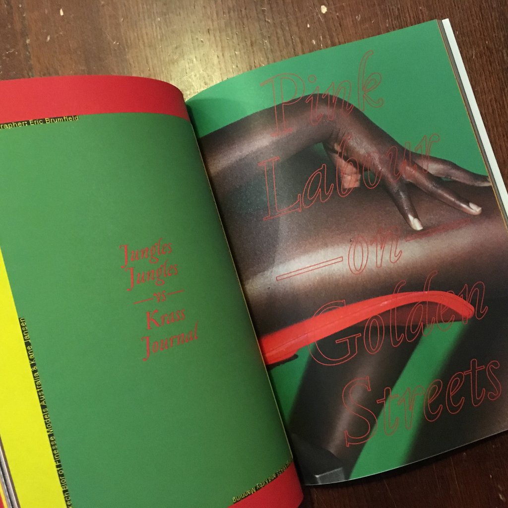 オーストラリアのアデレードで発行されている KRASS JOURNAL は、 Sanja Grozdanic と Tess Martin が二人で作ったインディペンデント誌です。これは非常に気になる雑誌だったので創刊号から最新の3号まで送ってもらいました。英語のテキストもそれなりに入ってるのですが、タイポグラフィ、デザイン、色使いなども興味深い雑誌です。