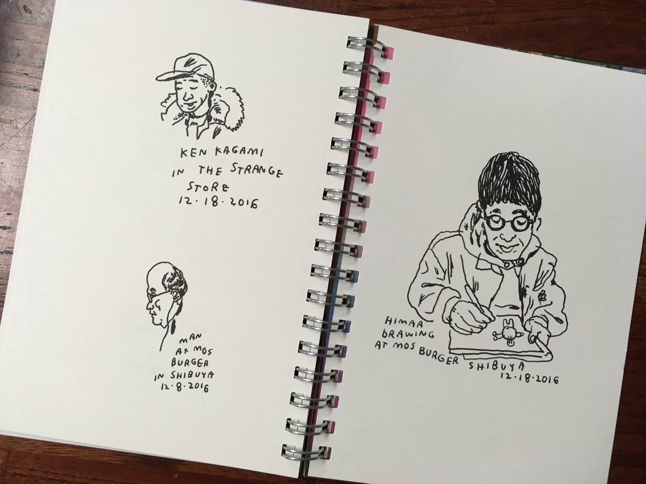 2016年12月、初めて訪れた日本でのドローイング、写真や日記をまとめた一冊です。いつも使っているスケッチパッドとほぼ同じサイズの小さな作品集です。文庫に毛が生えたか生えてないくらいのサイズです。