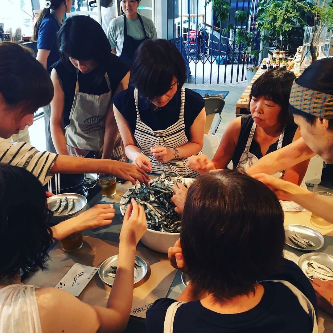そう、いりこはかつてあまり使っていませんでした。僕には『いりこ=生臭い』というイメージがああったのです。それは質の悪いいりこを使っていたからだと教えてくれたのが今回お世話になる『やまくに』の山下さん。スーパーにはなかなか良質のいりこは出回らないそうです。そういえば僕の周辺で積極的にいりこだしをとっている知り合いはほとんどいないような気がします。かつては大阪でも一般的にいりこだしが使われていたと、これも山下さんに伺いました。そんないりこの話から今回のワークショップが実現しました。