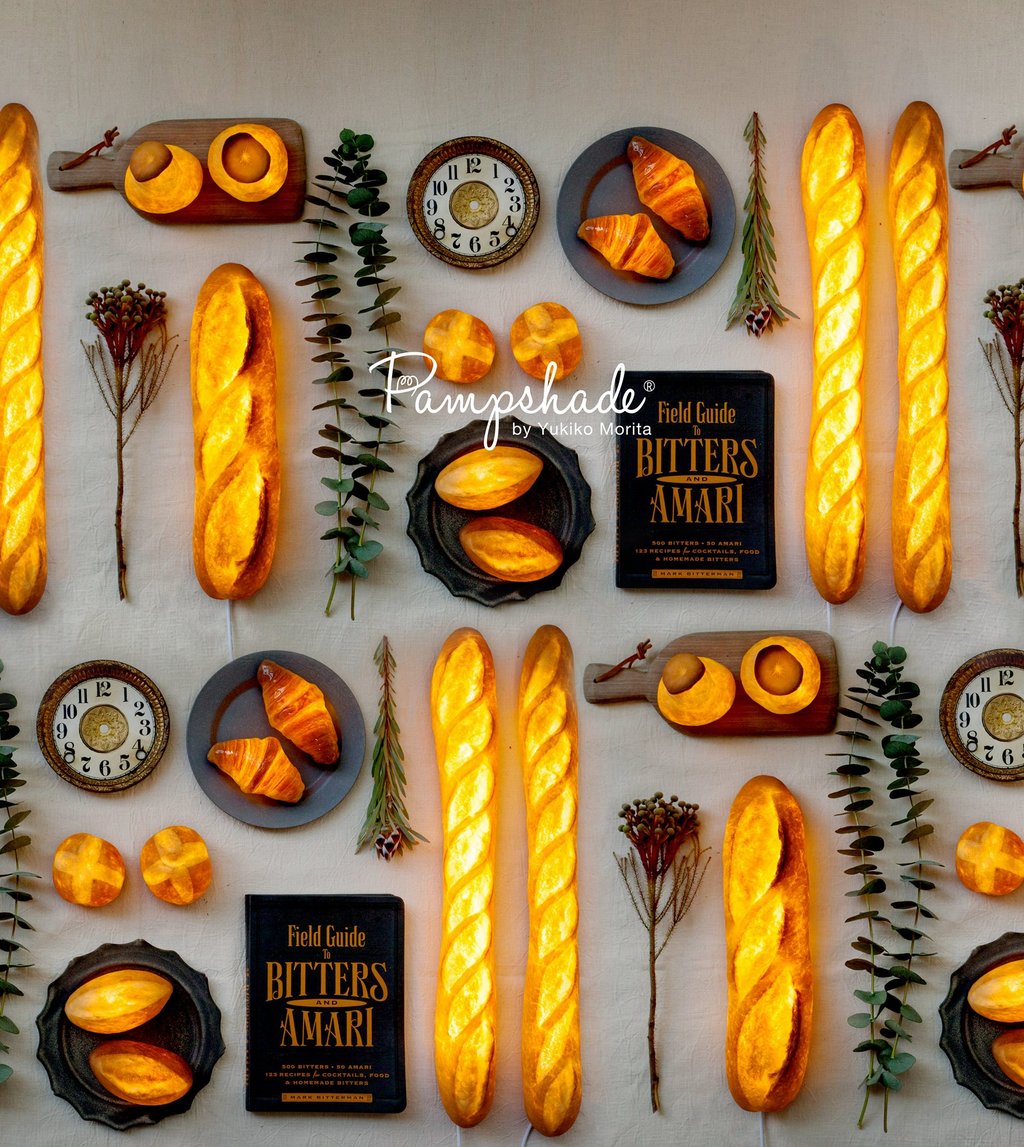 本物のパンからできたインテリアライト、パンプシェード。パンは食べておいしいだけでなく、人をあたたかい気持ちにさせる力を持っています。そんなパンのやさしい魅力と、あたたかな光が一つになった全く新しいインテリアライト。